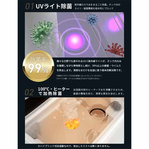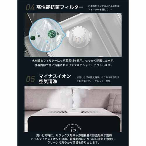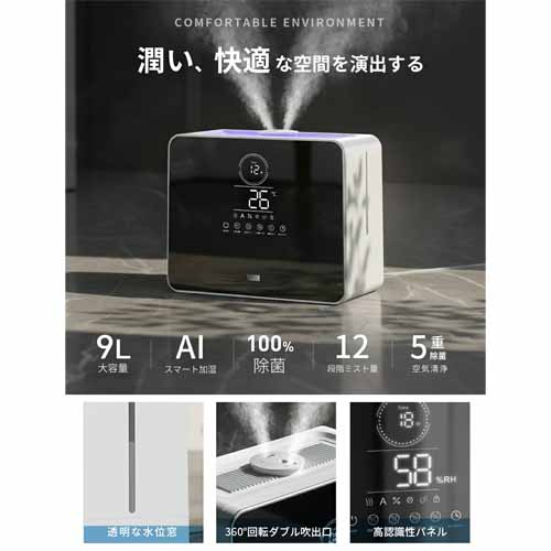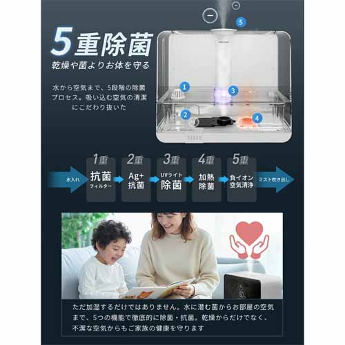 いま注目のスマート加湿にくわえて、空気清浄機能も搭載された便利グッズ。超音波式なので加湿スピードも速く、省電力でとにかく静かです。