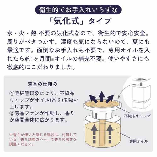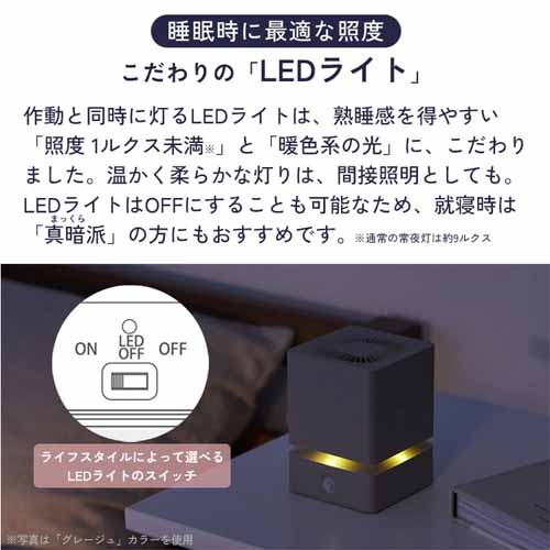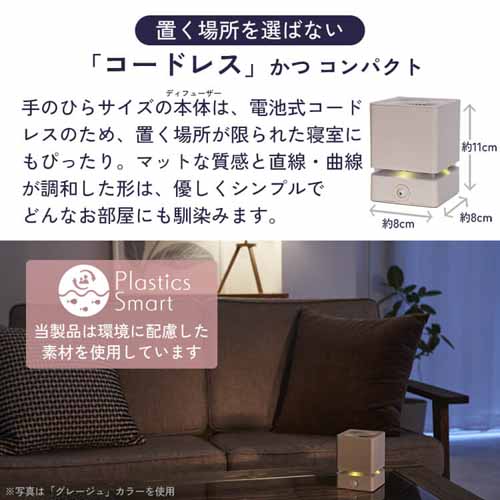 光・音・室温にくわえて、リラックスできる香りに着目した快眠グッズ。コードレスでコンパクトサイズなので、どんな場所でも使えて便利です。