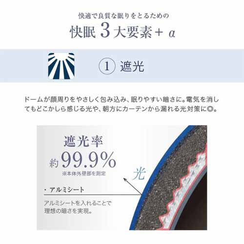 快眠3大要素である遮光・適度な閉塞感・周囲の音の軽減を押さえていることがポイント。睡眠専門医との共同開発にも信頼が置けます。