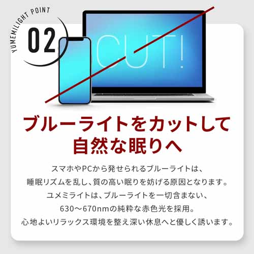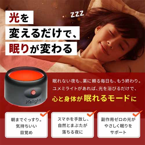 メラトニンの生成を促進し、ブルーライトを一切含まない赤色光に着目したイチ押し快眠グッズ。科学的に追及された機能性で、不眠症の人におすすめできます。