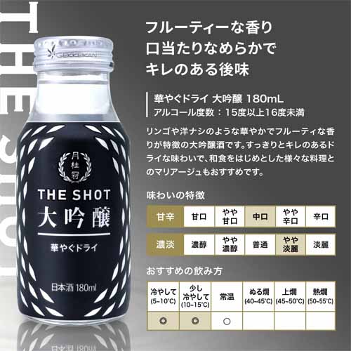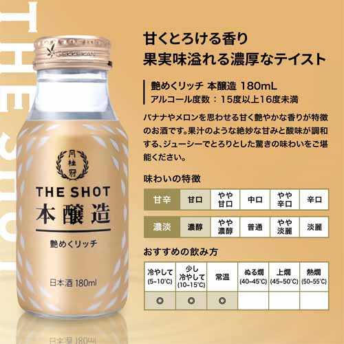 日本酒好きへのプレゼントで失敗しにくいのが飲み比べセット。月桂冠のTHE SHOTは180mLのミニサイズで複数の味わいを楽しめるため、好みが分からない相手にも安心して贈れます。飲み切りサイズなので気軽に試せる点も魅力で、初心者から日本酒好きまで幅広く喜ばれるバランスの良いギフトとして選びました。