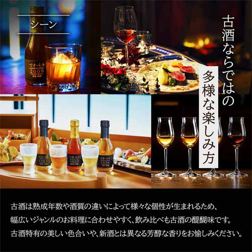さまざまな日本酒を飲み尽くしているツウにも喜ばれる逸品ギフト。古酒ならではの美しい色合いや、新酒とは異なる芳醇な香りを楽しめます。