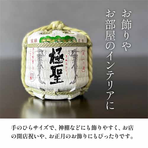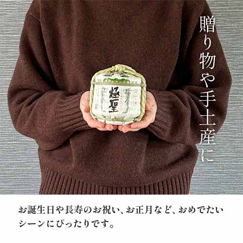 岡山県産雄町米を使用した純米酒を300mlサイズで楽しめる仕様。伝統的な酒樽デザインをコンパクトに再現しており、インテリアとしても楽しめます。飲み終わった後も飾れる記念性の高さが特徴です。