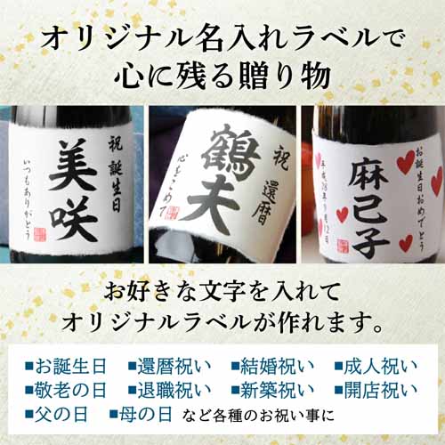 名前やメッセージを入れられる日本酒は、世界に一つだけの特別なプレゼントになります。誕生日や退職祝い、父の日など記念性を重視したいシーンに最適で、「自分のために選んでくれた」と感じてもらえる点を評価して選びました。