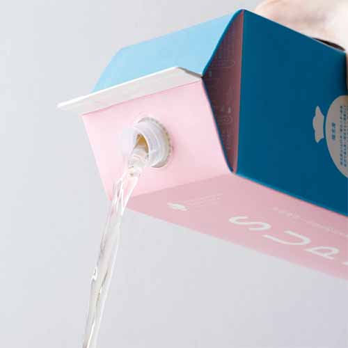 杜氏の肌の美しさにヒントを得て開発した本格入浴酒。紙パックのパッケージも、エコでぬくもり感のあるデザインです。