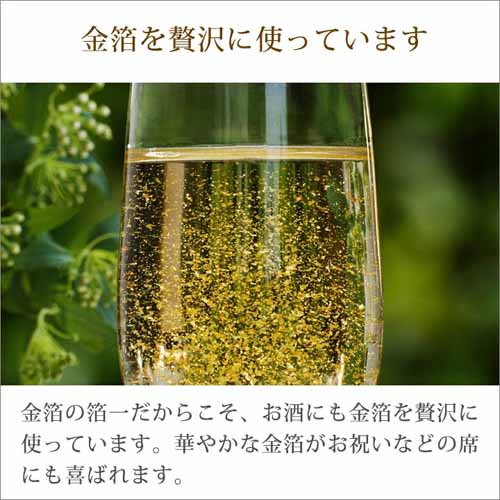 華やかな金箔を浮かべたうっとりするような一品。ゴージャスな見た目で、お祝いだけでなくパーティーや祝賀会にもふさわしいプレゼントになります。
