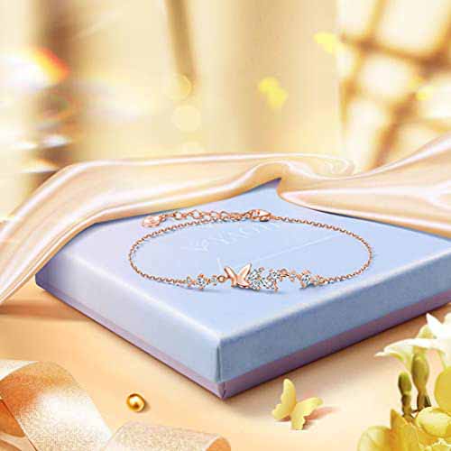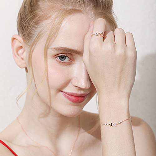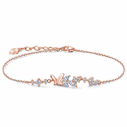 バタフライモチーフと煌めくキュービックジルコニアが配置された、繊細なチェーンブレスレットです。アジャスタブルクラスプによって手首のフィット感を調節でき、925スターリングシルバーの輝きがおしゃれです。