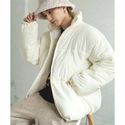 ボリューム感たっぷりに仕上げたコクーンシルエットが今時感のあるポリダウンジャケット。若干の肩落ちした丸みのあるフォルムが、中学生にも人気な韓国ファッションっぽいテイストです。ジップアップのフロントが、開けていても閉めても様になります。