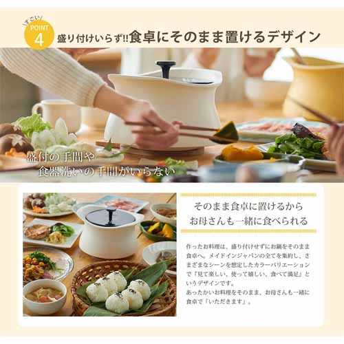 蓄熱性が高く、食卓にそのまま出しても冷めにくい優秀さ。健康でありたいと願いながらも、手間をかけず美味しいご飯を求めている人にプレゼントしたい逸品です。