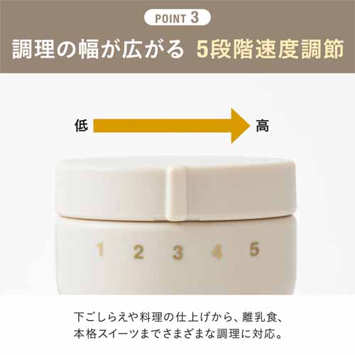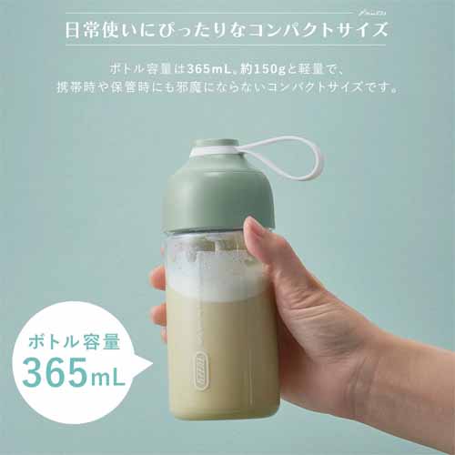 乾電池駆動のコードレス設計で持ち運びしやすく、オフィスや外出先でも便利。高速回転ブレードでダマのできにくい滑らかな仕上がりに。パーツは取り外して洗える衛生的な構造です。