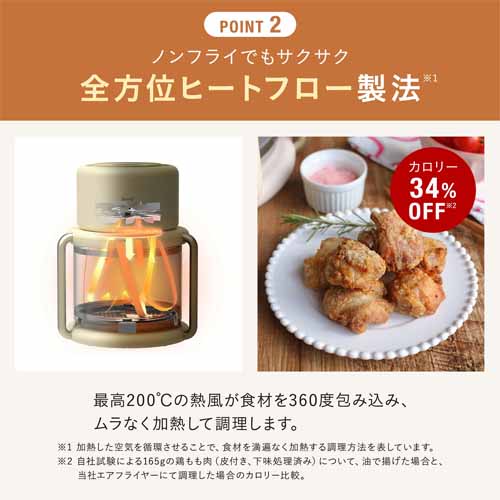 野暮ったい見た目の従来的なノンフライヤーに比べて、おしゃれでインテリアにも映えるデザイン。油を使わないため後片付けもラクで、毎日使いやすいモデルです。