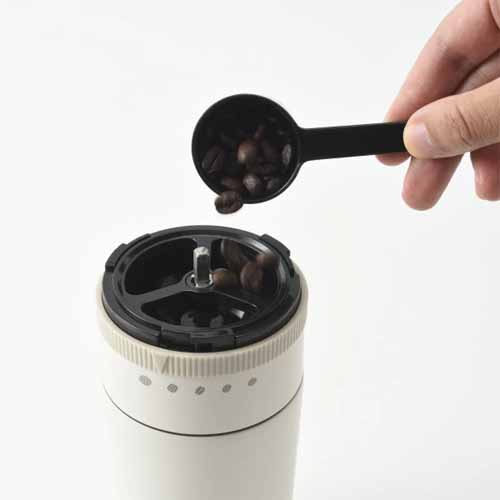 豆・粉どちらも使える2WAY仕様。挽き目5段階調整や保温・保冷効力など使い勝手が良く、充電式で持ち運びもカンタンです。フィルターは繰り返し洗えるステンレス製で経済的。静音設計で早朝にも使いやすいのが嬉しいポイントです。