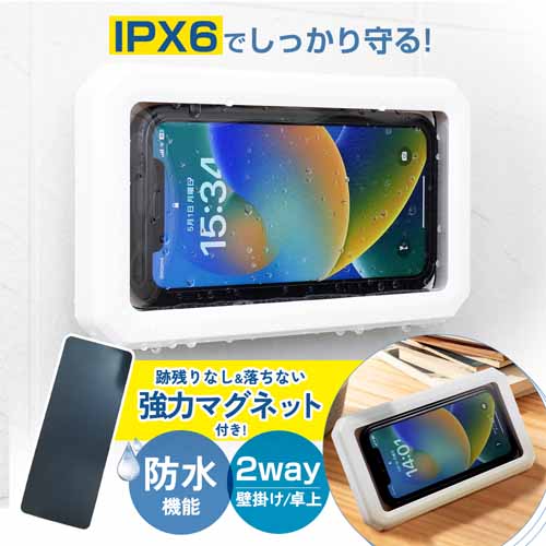 高い防水性で水滴・汚れからスマホをしっかり保護。幅広いスマホに対応(6.8インチ以下)し、360度の回転調節ができるので縦でも横でも設置がカンタンです。キッチン以外にもお風呂場などで活躍する便利な多用途グッズ。
