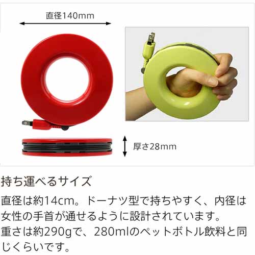 しっかりした巻き取り機構でコードが絡みにくく、片手で使える扱いやすさが魅力。耐久性のある樹脂素材で長持ちし、コンパクトで置き場所も取らない設計。延長コードとしても使え、差し込み口は複数機器に対応。カラー展開も豊富で、インテリアに合わせて選べる点もプレゼント向きです。