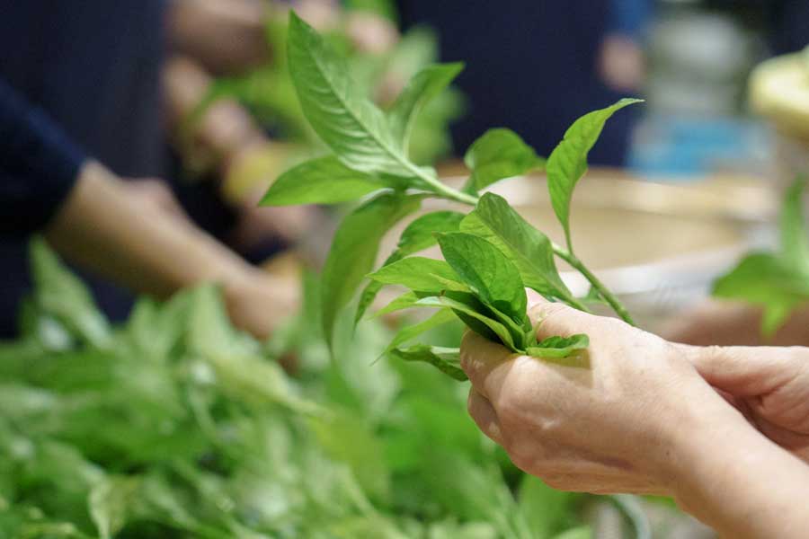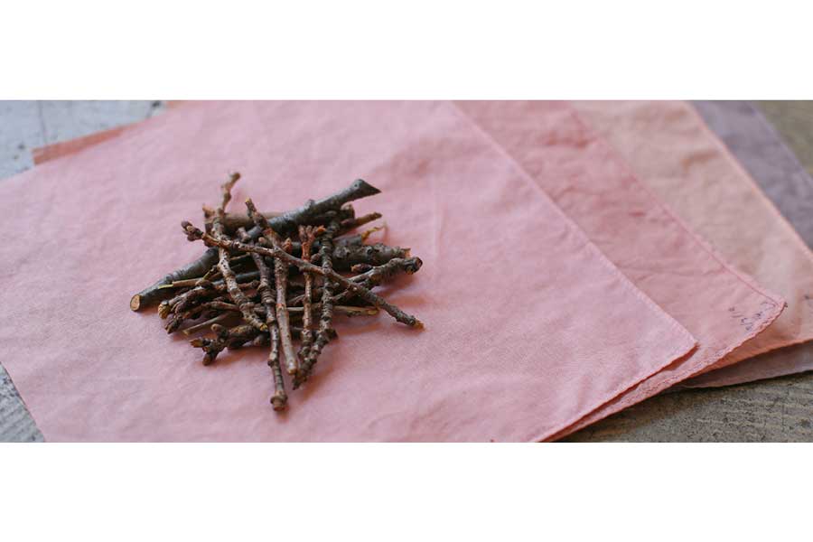 桜のつぼみや枝先、夏の藍の生葉など、真糸/maitoの色はその時々の植物から生まれます。限られた時期にしか採れない素材を用いるため、同じ色は二度と生まれないことも少なくありません。