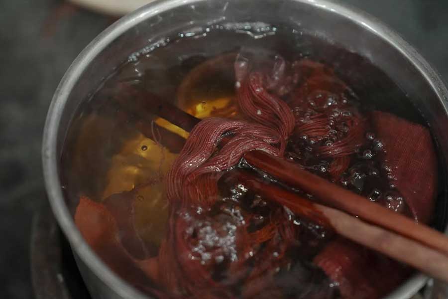 真糸/maitoのものづくりの核にあるのは、化学染料を一切使わない「100%草木染め」への徹底したこだわりです。