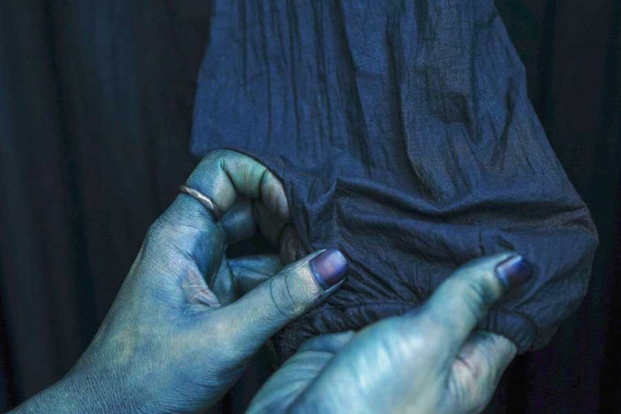 その後、東京藝術大学で染織を学ぶ中で、ガラスや革など多様な素材表現に触れながらも、最終的に立ち返ったのは「染め」という原点。