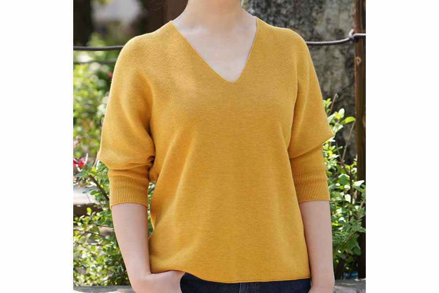 糸や製品になってから染めるのではなく、繊維の芯までしっかりと色を含ませることで、やわらかく奥行きのある色合いを実現。さらに、色持ちが良く、使い込むほどに穏やかに変化していくことも特徴です。