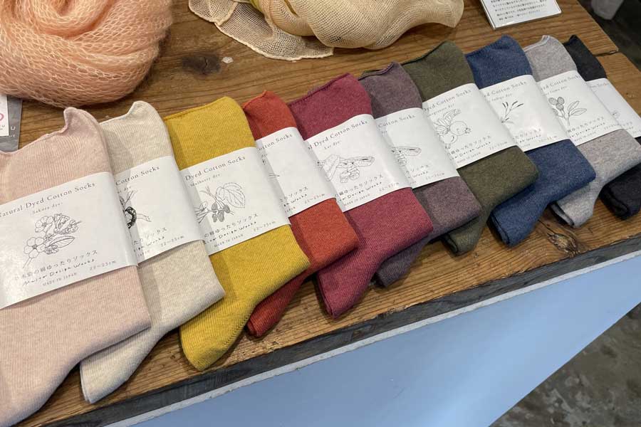 締め付け感の少ないやさしい履き心地と、自然由来のやわらかな色合いは、パートナーや友人、両親への手土産にぴったり。日常的に使える実用性の高さに加え、「草木染め」というストーリー性も感じられることが魅力です。