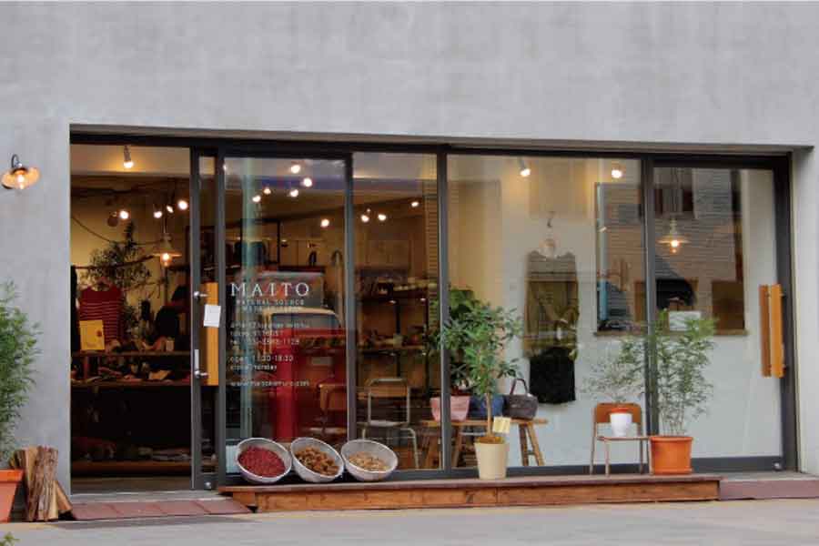 ものづくりの街・蔵前に構える真糸/maitoのショップは、草木染めの色と静かに向き合える特別な場所。やわらかな色合いに包まれた空間には、自然の恵みと人の手仕事が息づいています。