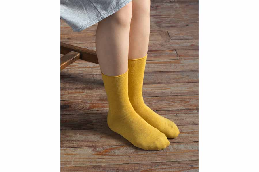 「ちょっとした贈り物だけど、きちんと気持ちは伝えたい」。そんなときに選びたいのが、草木染めのゆったりソックス。原綿染めなので、色持ちもよく日常使いしやすいことも魅力です。