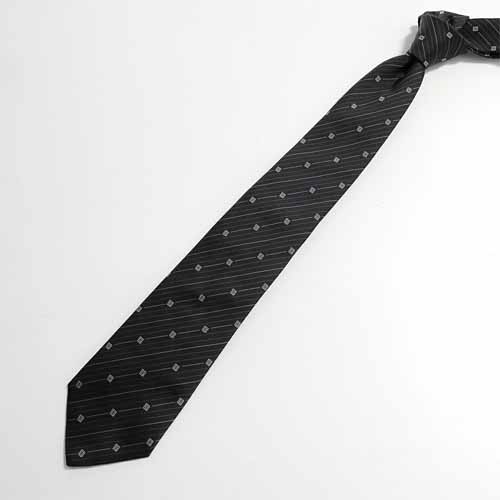 シルク100%素材の上品な光沢感と、ブランドロゴを控えめに織り込んだデザイン。シャープな印象を演出するストライプ柄が人目を惹きます。結びやすく型崩れしにくい剣先の仕立てで、毎日のビジネススタイルに取り入れやすいネクタイです。