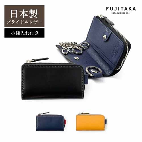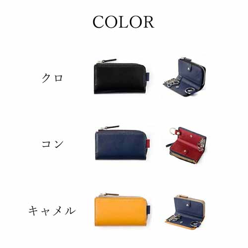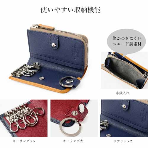 外側の革にはイギリスの伝統あるタンナーのブライドルレザーを採用。ロウを浸透させることで耐久性と撥水性に優れ、使い込むうちに美しい光沢を見せてくれます。内部には5連リングと着脱式の大きめキーリングを備え、3つのポケットと小銭入れまで付いた機能性が魅力的です。