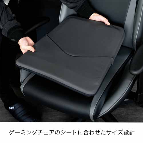 デスクワークや移動が多い人にも嬉しいアイテム。座りながら使えるとともに、体へのあて方を変えると腰・お尻・ふくらはぎ・背中にも使用できます。