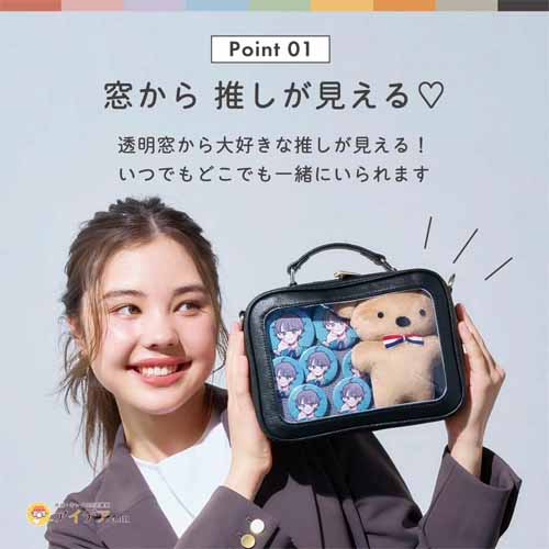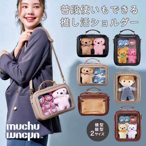 「推しぬい」を一緒にお出かけさせたいファン必携のショルダーバッグ。ぬいぐるみを保護しつつ、透明窓から可愛く見せられる仕様で、ライブやカフェ巡りにもぴったり。推しとの日常を楽しみたい“ぬい撮り勢”から絶大な人気を誇ります。