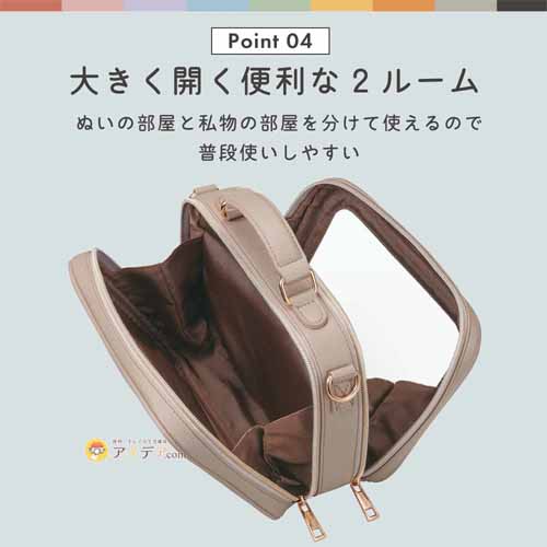 取り外しできるベルトが付いていて、ハンドでもショルダーバッグでも使える優れもの。ブランド小物のような洗練されたデザインで、普段使いしやすいアイテムです。