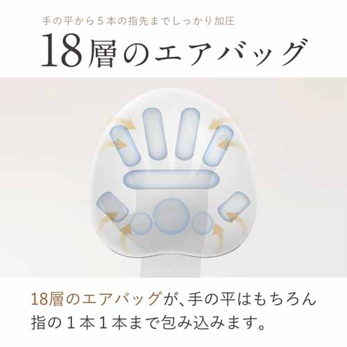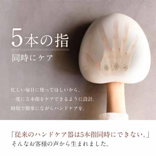指先や手のひらなど3つの加圧モード、3段階の温度調節など、気分や好みに合わせて選べる多彩なハンドマッサージャー。5本指を同時にケアできる設計で、手早いハンドケアを叶えてくれます。