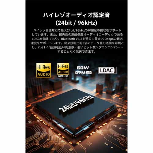 aptX HD対応でCD音質を超える高解像サウンドを実現。最大30mの通信距離を持ち、安定したワイヤレス伝送が可能です。ステレオアナログRCA・光出力端子を搭載し、幅広いオーディオ機器に対応。コンパクトで置き場所に困らず、セットアップも簡単。