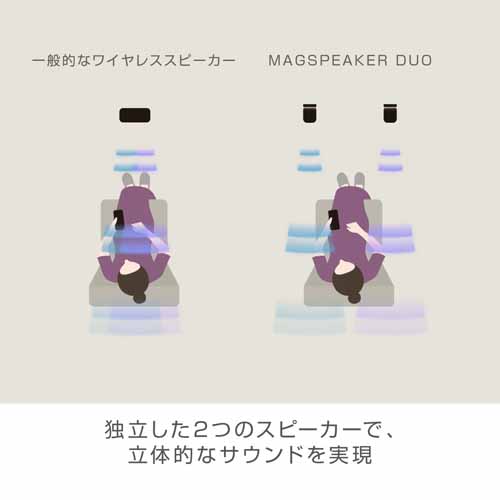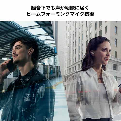 2つの独立したスピーカーで音を立体的に感じられ、楽器がその場にあるような臨場感のある音空間を作り出します。完全ワイヤレスのBluetooth接続、内蔵充電池、IP67相当の防塵防水性能で機能性はカンペキ。約20.5時間の連続再生でミュージックライフに寄り添います。