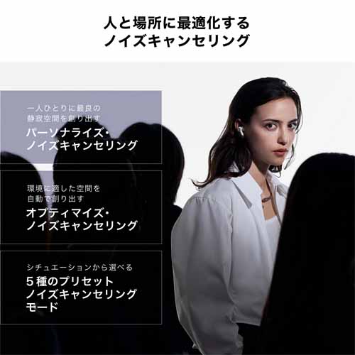 外部への音漏れが少ないカナル型イヤホンであるとともに、大きさと導管の長さの異なるイヤーピースが12種類も付属されてフィット感を合わせられます。ハイレゾ対応・ノイズキャンセリングだけでなく、外音を取り込みながら音楽が楽しめるヒアスルー機能などとにかく多機能。