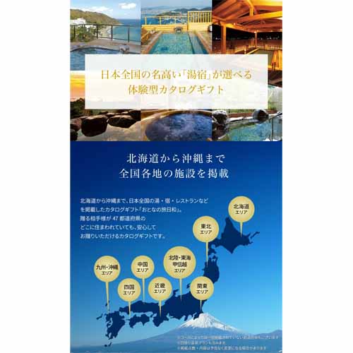 温泉旅行をプレゼントする方法で迷ったら、自由度の高いカタログギフトは安心の選択肢。エリアや宿泊施設を両親が自分たちで選べるので、「行きたい場所」「行ける日程」に寄りそう心遣いが伝わります。デジタル形式であっても冊子タイプになっていることが多く、読み物としての面白さとともに選ぶときのワクワク感があります。