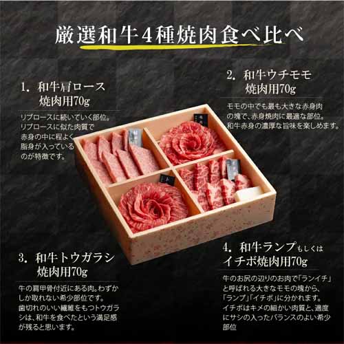 A4・A5等級の厳選和牛を合計840g、美しく盛り付けた三段重スタイル。スライスやステーキカットなど3種類のカット法で仕上げられた肉が入っていて、焼肉やすき焼きなどさまざまな味わい方を楽しめます。赤身と霜降りのバランスがよく、見た目の華やかさと味わい深さを両立したギフトセットです。