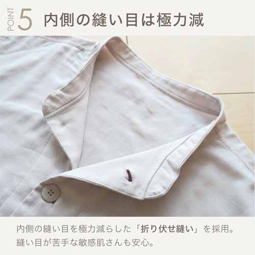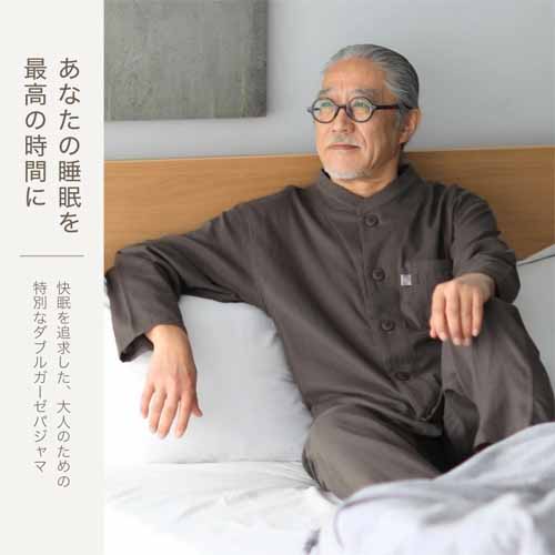 通気性・吸湿性に優れた綿100%のダブルガーゼ素材。寝返りしやすいストレッチ仕様で、ボタンも大きめな親切設計です。お風呂上がりから朝まで快適に過ごせる軽やかな着心地は男性好み。落ち着いた色合いがラインアップしていることも贈りやすさのポイントです。