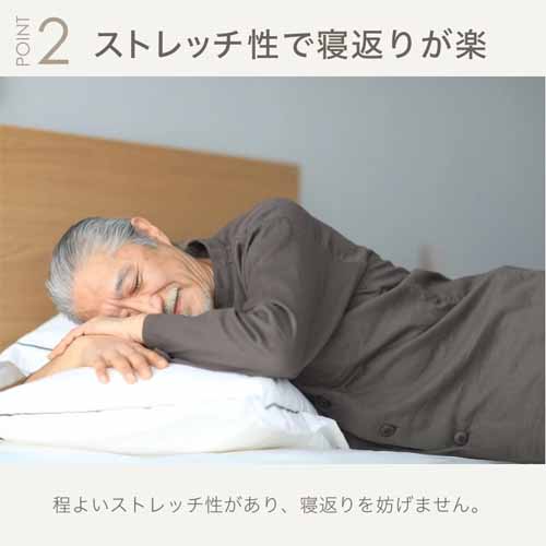 暑がりの男性が1年中着ることができる半袖がおすすめ。ストレスフリーな寝返りは病みつきになります。