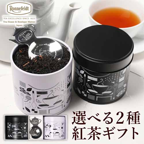 13種類から選ぶ2種の茶葉と、オリジナル缶、ティースプーンが付いた紅茶のセット。茶葉の味わいを際立たせた上質な紅茶は香りから気持ちを高揚させます。高級感があり、使い終わった後も小物入れとして楽しめるデザイン性の高い缶も特徴です。