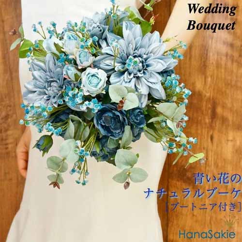 リゾート婚やガーデンウェディングに映える、鮮やかなブルーのブーケ。清らかで爽やかな色合いが、花嫁の笑顔をより一層引き立てます。生花に近い質感で、写真にも美しく残せるサムシングブルーの人気アイテムです。