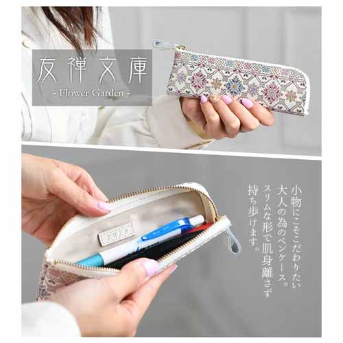 友禅文庫のペンケースは、日本の伝統技法である文庫革を使用した上品な文房具です。華やかな花柄デザインが美しく、女性へのプレゼントとしても人気があります。見た目の華やかさだけでなく実用性も高く、大切な筆記具をおしゃれに持ち運べるアイテムです。