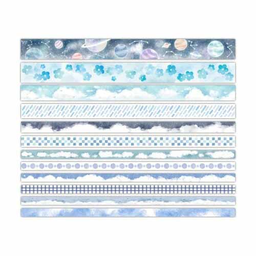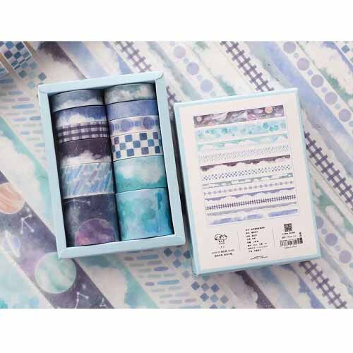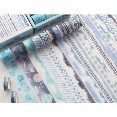 複数のデザインがセットになったマスキングテープで、ノートやカードの装飾に便利。貼ってはがせる素材のため使いやすく、手帳デコやラッピングにも活躍します。色や柄のバリエーションが豊富なのも魅力です。