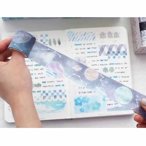 デザインマスキングテープのセットは、ノートや手帳をかわいくデコレーションできる人気の文房具です。カラフルなデザインで使う楽しさがあり、文房具好きの女性にも喜ばれるプレゼント。手帳や手紙、ラッピングなどさまざまな用途で活躍します。