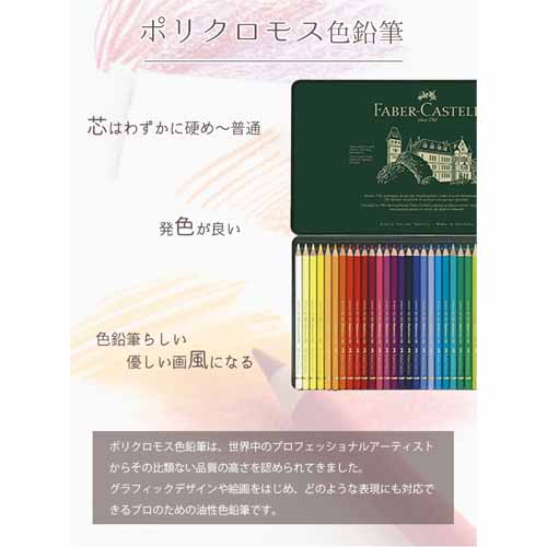 36色の豊富なカラーバリエーションで、繊細な表現が可能。油性色鉛筆ならではの鮮やかな発色と耐光性の高さが特徴です。芯が折れにくく、重ね塗りやぼかしなど多彩な表現ができるのも魅力。缶ケース入りで保管しやすく、贈り物にもぴったりです。