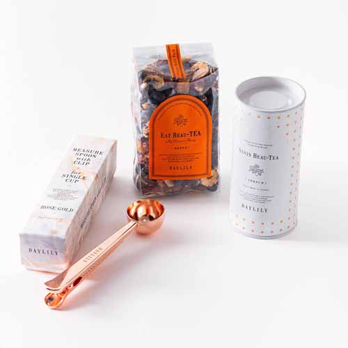 新たなチャレンジや門出などを応援したいなら、身体をケアしながら優雅なティータイムを過ごすことのできる「DAYLILY人気3点セット」がおすすめ。飲んで食べて綺麗になるお茶「EAT BEAU-TEA」、デザートのような「台湾杏仁茶」、クリップ付きで使いやすい「メジャースプーン」が入って、充実のカラダ想いセットです。