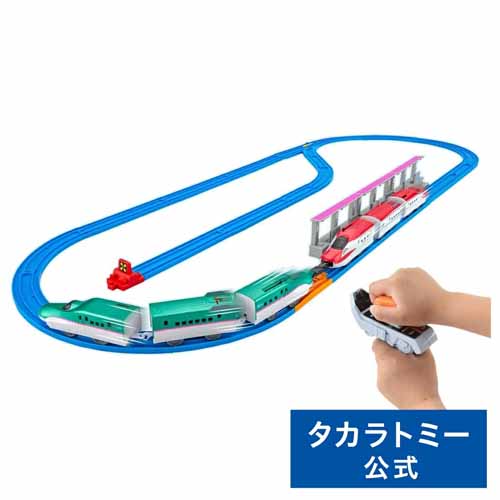 子どもが大好きな「はやぶさ」と「こまち」のセット。遠隔操作で運転体験ができるので、運転士さんの気分になって気分は最高潮です。