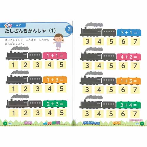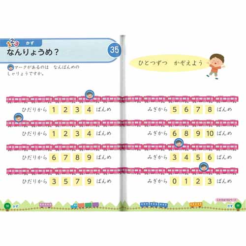 電車の世界を楽しみながら学習を進めることで、勉強に対する好奇心が高まる内容。子どもの発達過程を考慮して作成され、自分で問題文を読んで口で答えたり指でなぞったりして答えていけます。全53問の書き込まない学習法なので、何度も繰り返し使えることが魅力。