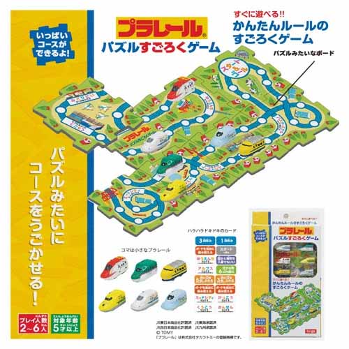 すごろくのボードはパズルとしても楽しめる二度おいしい仕様。6種類の新幹線マスコットはちょこんと可愛らしく、すごろくの駒としてもおままごと用アイテムとしても遊べます。鉄道要素がしっかり詰まった内容で遊びやすさもバッチリ。