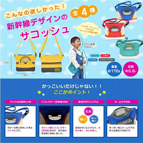 軽くて身につけやすいサコッシュは、休日のお出かけや旅行にぴったり。新幹線デザインながら派手すぎず、普段着に合わせやすいこともポイントです。小銭・ハンカチ・おもちゃなど、子どもが持ち歩きたいものがしっかり入り、。公園遊びやイベントでも活躍します。