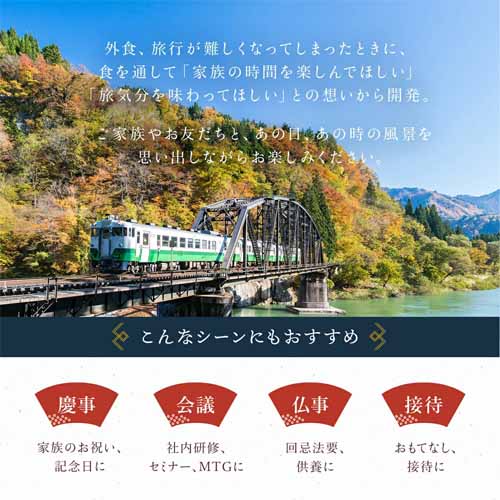 全国各地の名物駅弁を自宅で楽しめる“鉄道旅気分”満載の食べ比べセット。旅先の楽しみのひとつである駅弁を家族でシェアでき、どれを食べるか選ぶ時間も楽しいポイント。鉄道旅が好きな人にも意外性のあるプレゼントになります。